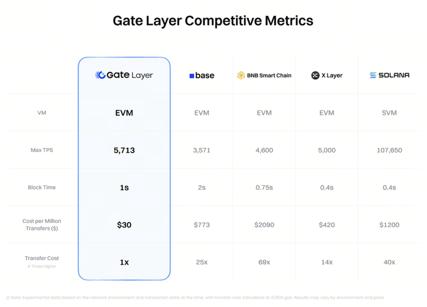 Proses satu juta transaksi di Gate Layer hanya memerlukan biaya sekitar $30—jauh lebih murah daripada Base ($700), BSC ($2.000), dan Solana ($1.000). Efisiensi biaya ini memungkinkan aplikasi berskala besar berjalan secara optimal.