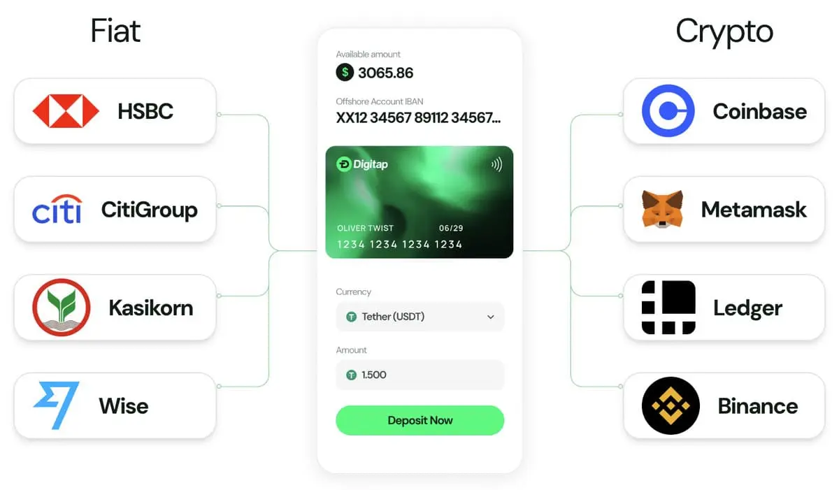 Dibangun sebagai omni-bank pertama di dunia, Digitap menggabungkan crypto dan fiat ke dalam satu aplikasi. Pengguna sekarang dapat mengakses dompet, bank, dan bursa dalam satu aplikasi tunggal. Mereka bahkan dapat menyetor, menarik, menukar, dan membelanjakan baik dalam fiat maupun crypto dari aplikasi yang sama.