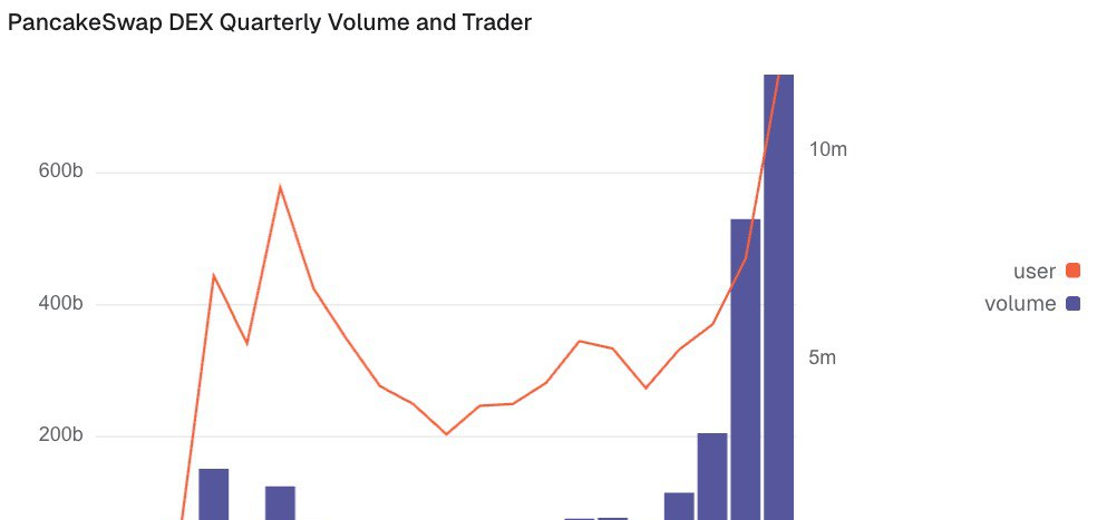 分散型取引所(DEX) PancakeSwapは、第3四半期に取引量が$749 billionで、第2四半期から42%増加し、四半期の新記録を樹立しました。