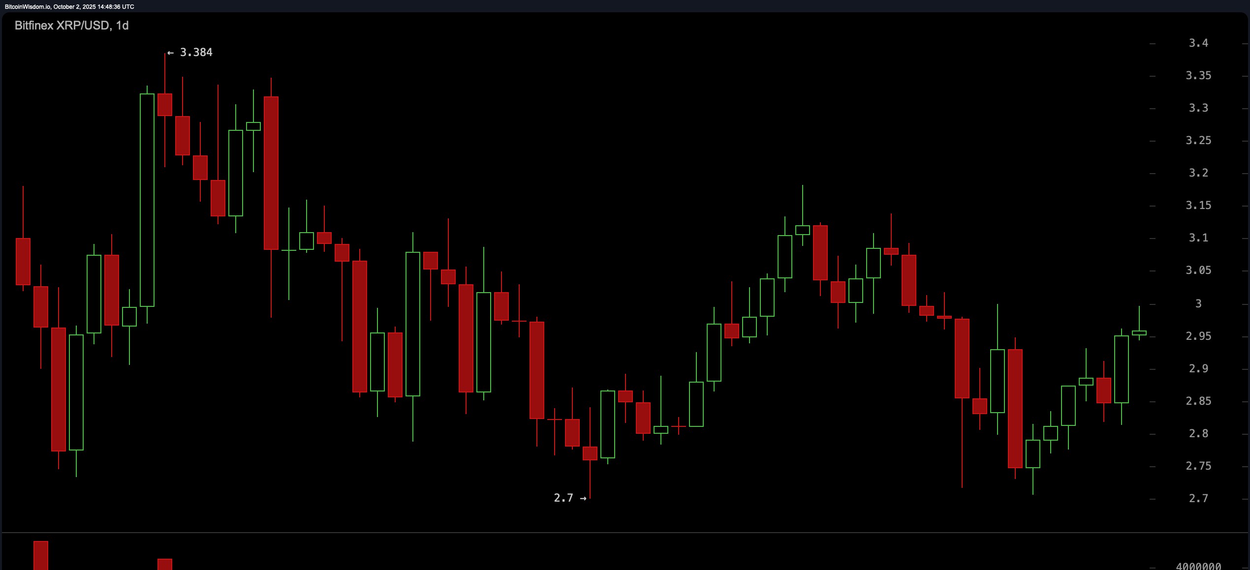 XRPの価格は2025年10月2日に$2.98で推移しており、今日は0.8%上昇しています---トレーダーたちは頑固なサポートと魅力的なブレイクアウトバンドの間を試しています。