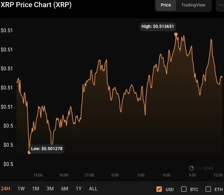 Bununla birlikte XRP basın saatine göre gün içi en düşük seviyeden yüzde 0,02 artışla 0,5093 dolardan işlem görüyordu. Tüccarlar, yükseliş momentumunun negatif baskının üstesinden gelip XRP fiyatını yükseltip yükseltmeyeceğini görmek için 0,5134 dolar bariyer seviyesini izledikçe piyasa tedirgin olmaya devam ediyor.