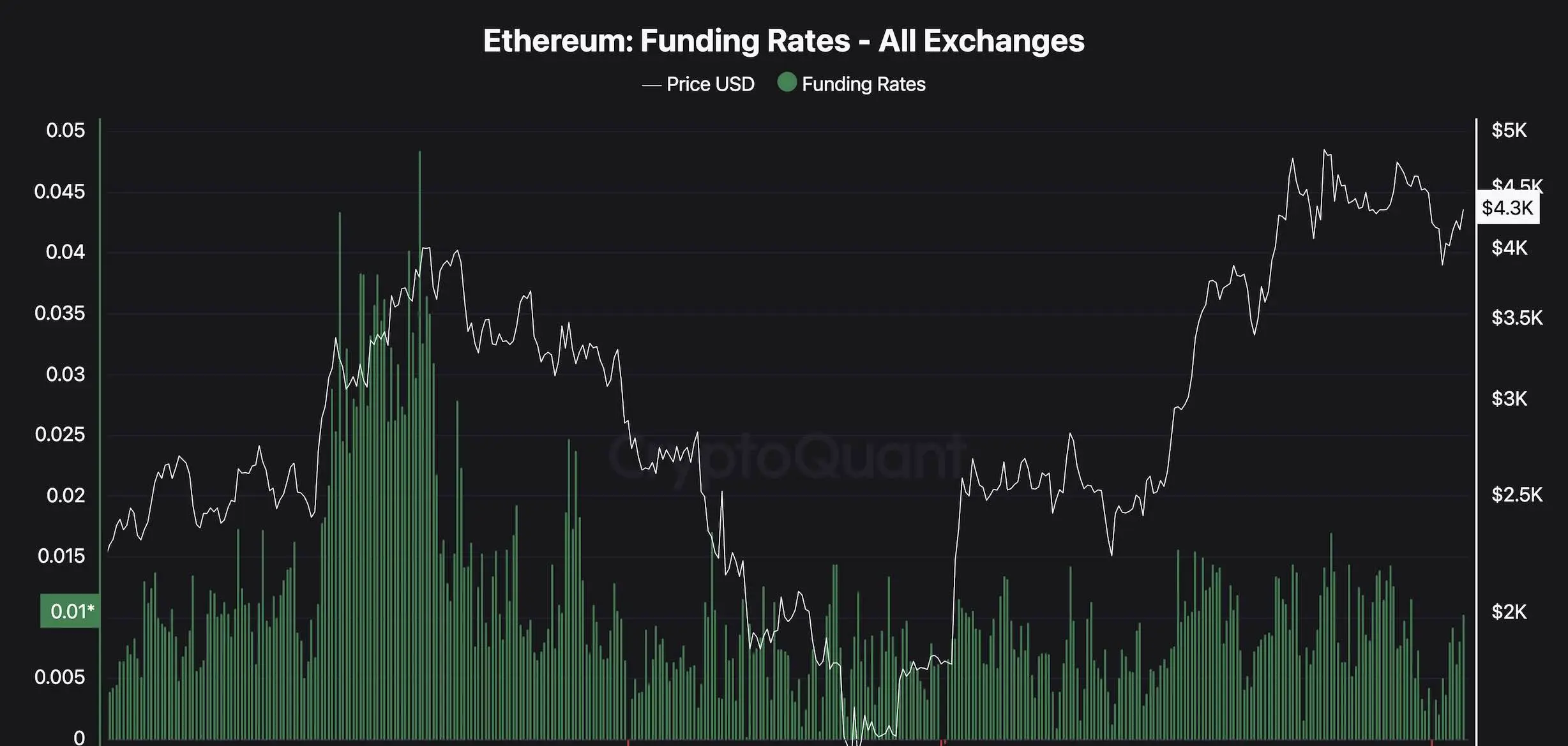 Ethereum finansman oranları, son fiyat düşüşü sırasında kısaca negatif hale geldikten sonra, son zamanlarda pozitif alana geri döndü. Bu negatif düşüş, kısa pozisyon alanların kontrolü ele geçirdiğini, finansman oranlarını sıfırın altına iterek piyasanın ağır bir şekilde düşüş eğiliminde olduğunu gösterdi.