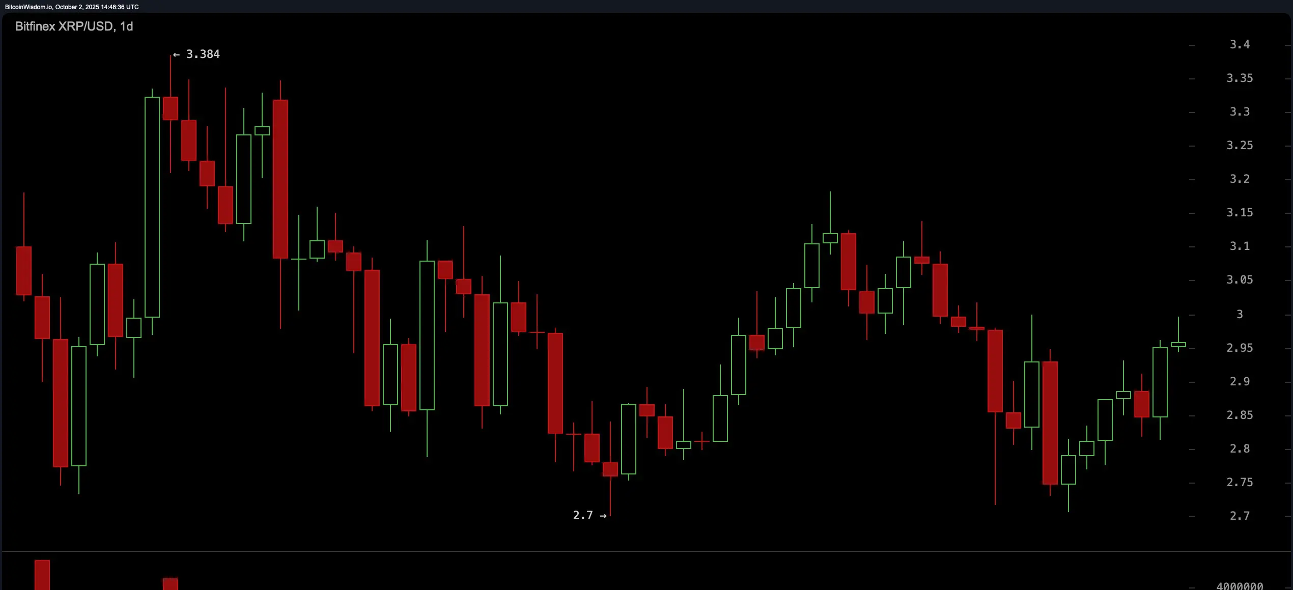 XRP'nin fiyatı 2.98 $ seviyesinde, 2 Ekim 2025'te---bugün %0.8 artışla---tüccarlar ısrarcı destek ile cezbedici bir kırılma bandı arasında test yaparken.