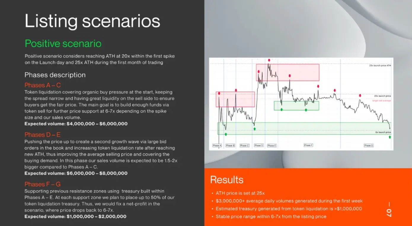 Gotbit’in listeleme stratejisinde, token listelemesinin ilk dakikalarında en azından 10 katlık bir yükseliş yaratılarak yatırımcıların dikkatini çekmek ve kısa süreli pump-dump operasyonlarıyla tepe noktalardan mümkün olduğunda fazla token satmak yer alıyor: