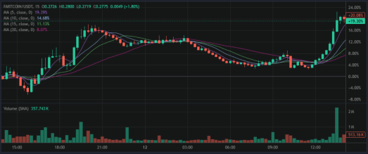 Fartcoin піднявся на 14.15% з моменту ранкового оновлення.