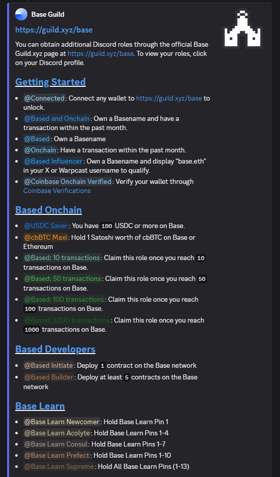 Base 社群 Discord 伺服器中的角色可作為衡量用戶認同及貢獻的依據,並與 BASE 空投分配掛鉤。