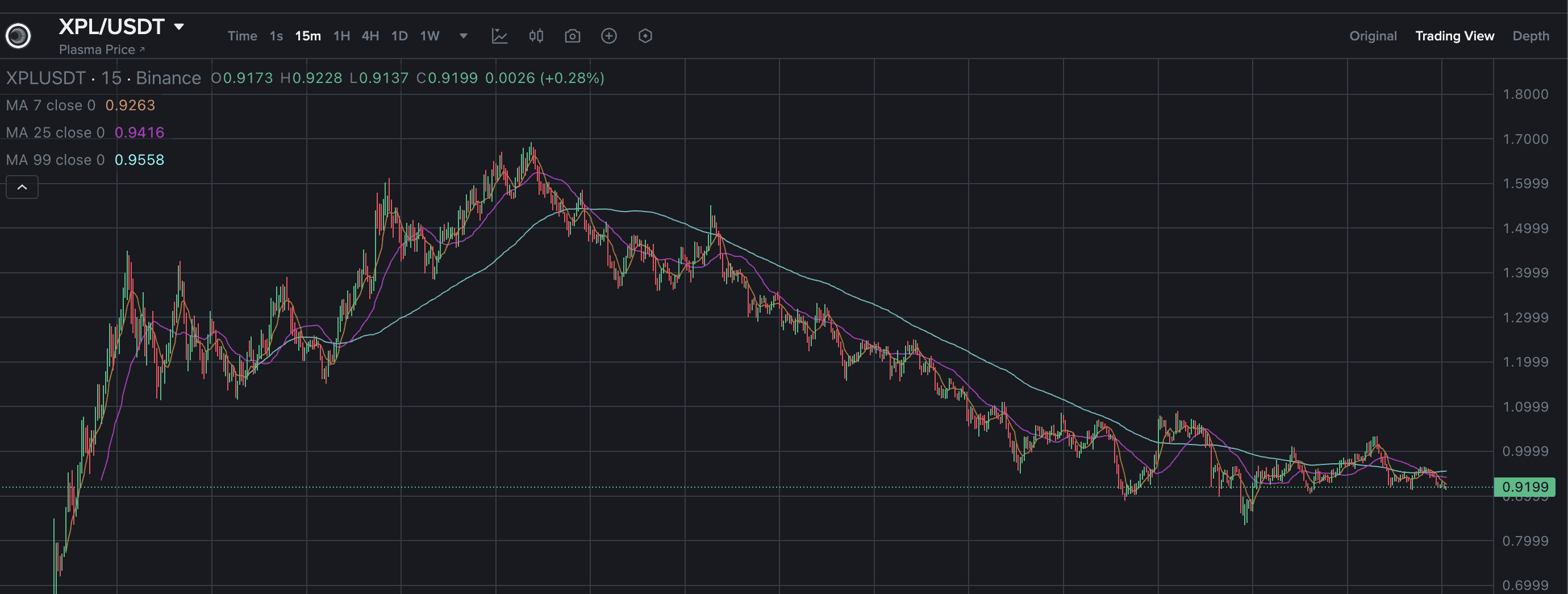 📊 $XPL /USDT -- 15分鍾圖表價格: $0.9199