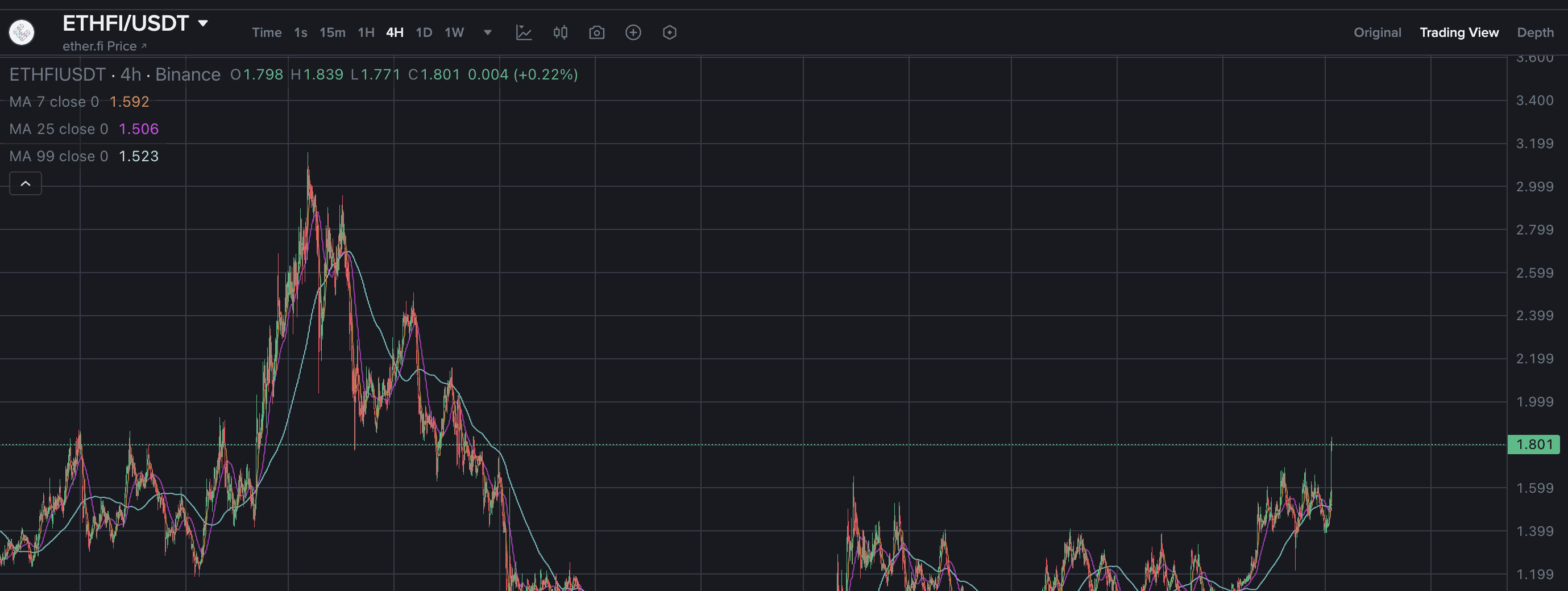 📊 ETHFI/USDT -- 4H 图表价格: $1.801